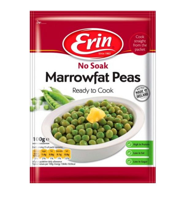 Erin No Soak Marrowfat Peas are a traditional favourite - an ideal accompaniment to roast beef, sausages, bacon and creamy mashed potato.