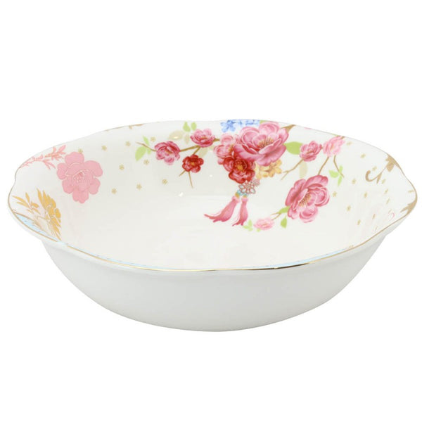 Immerse yourself in the elegance of yesteryear with the Vintage Blossom Porcelain Serving Bowl. This exquisite piece is not just a serving bowl; it's a celebration of the beauty and delicacy that is synonymous with traditional British tea times. Adorned with a flourish of florals, this bowl is a nod to the charming English gardens and the timeless grace they represent.
