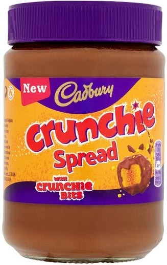 Introducing the newest addition to Cadbury's spread range - the Crunchie Spread! This delicious spread is made with the iconic Crunchie honeycomb pieces, blended with Cadbury's rich milk chocolate, resulting in a taste that's hard to resist. With its smooth and creamy texture, it's perfect for spreading on toast, dipping fruit or even adding to your favorite baked goods.