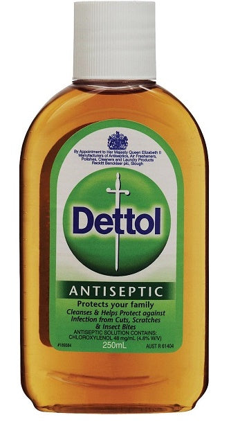 Dettol is recommended for treating cuts, scratches, abrasions, insect bites, minor burns, sunburn, sore lips, minor skin infections, chapped roughened hands and cracked itchy skin. Dettol assists in the treatment of wounds by fighting infection and helping prevent re-infection. Dettol contains two powerful antiseptic ingredients in a gentle formulation and incorporates Almond Oil to soothe and moisturise the skin.