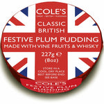 Cole's Classic British Festive Plum Pudding is made with vine fruits and whisky. Sultanas, currants, raisins, candied citrus peel, and more make this pudding a fantastic addition to your Christmas dessert offerings