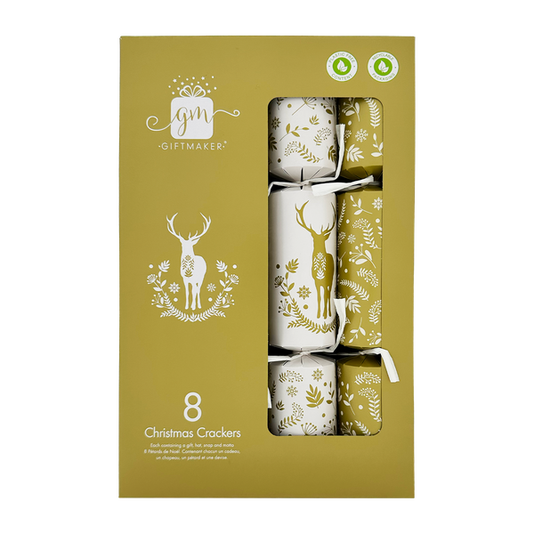 Get ready for a holly jolly Christmas with Giftmaker Gold and White Stag Christmas Crackers! These deluxe crackers are a must-have for any festive gathering, bringing families together with a fun surprise inside. Keep the holiday spirit alive!