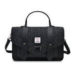 – Genuine Harris Tweed hand woven in the Outer Hebrides, – Microfibre leather outer – Structured shape Dimensions: L:28cm H: 19cm W:9cm RRP: £69 (Black and Grey Suede: £79)