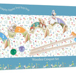 Enjoy a classic game of croquet with this beautifully designed Beatrix Potter set. Take it in turns to hit a ball through the numbered arches. Whoever hits theirs through the last arch first is the winner! Contains 4 arches, 2 mallets and 2 balls.