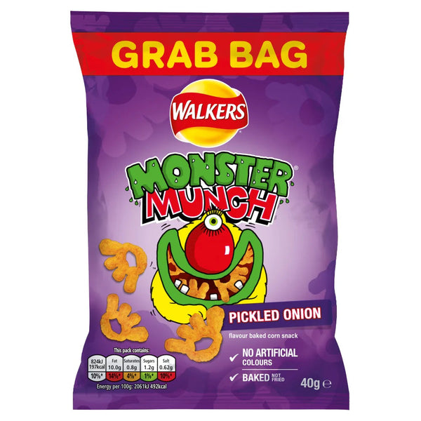 With no artificial colours or preservatives, you can feel good about snacking on Walkers Monster Munch Pickled Onion.