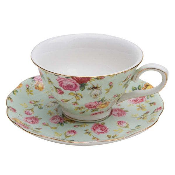 Introducing the Rose Garden Tea Cup, a delightful addition to any tea enthusiast’s collection that captures the essence of an English garden's tranquil beauty. Designed for those who seek refuge in the soothing ritual of tea, this cup and saucer set is a celebration of nature's most famed bloom—the rose.