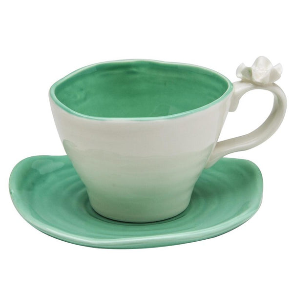 • Dimensions: Perfectly sized for your morning or afternoon tea, with a saucer that gracefully holds your cup and spoon.