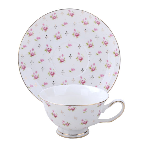 These cups and saucers feature a charming rose design that adds a touch of romance to my tea time. The set is well-made, and the cups are just the right size. I've enjoyed many delightful tea moments with friends using these lovely pieces.