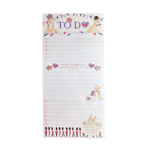 Stay organized in style with the Rosanne Beck To-Do List Long Pad! Featuring a charming palace guards design with corgis and bunting, this pad is perfect for adding a touch of regal elegance to your daily routine.