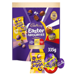 New Cadbury Easter Favourites Bag with treatsize bags of Cadbury Mini Eggs, Mini Cadbury Dairy Milk Eggs and Cadbury Creme Eggs. Great for egg hunts or for sharing throughout the Easter season!