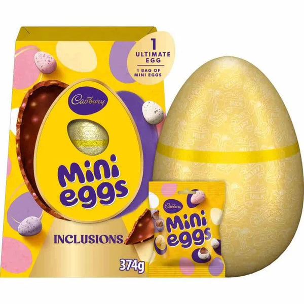 NEW Ultimate Mini Eggs Chocolate Easter Egg. Thick shelled milk chocolate egg with Cadbury micro Mini Eggs inclusions and 1 bag of Mini Eggs