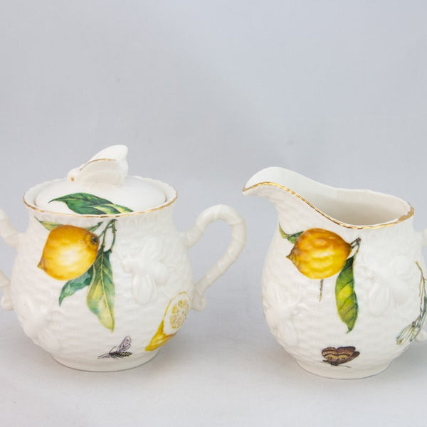 The Lemon and Butterfly Sugar and Creamer set form an elegant and charming duo for tea time gatherings. Their intricate designs add a touch of grace and sophistication. Both the sugar bowl and creamer are practical and visually appealing. The packaging was secure, ensuring their safe arrival. For those aiming to create an elegant and charming tea atmosphere, this collection is a perfect fit.
