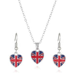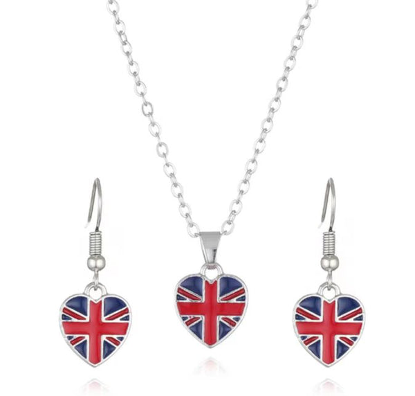 The Union Jack Heart Earring and Necklace Set adds a subtle touch of patriotic charm. It's perfect for those who appreciate the Union Jack's elegance.