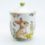 The Whimsical Woodland Bunny Canister is a treasure trove of artistry, a perfect blend of utility and beauty. Its pastoral bunny scene, replete with the soft hues of spring, brings a touch of serene charm to the often bustling energy of kitchen life. This canister doesn't just hold your ingredients; it holds the magic of a British spring, where every bloom and butterfly tells a story of renewal and wonder.