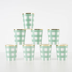These green gingham cups are classic and practical. They added a timeless touch to our party, and the quality was reliable. Good value for the price.