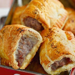 Favourite finger food of everyone at any party! These cocktail sausage rolls have crispy golden puff pastry with a stuffing of juicy sausage. These sell out fast. They are a customer favourite!