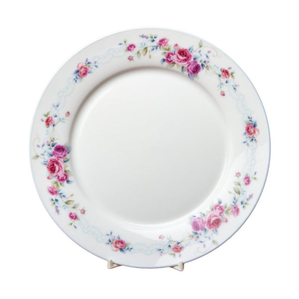 These salad plates feature a classic design that complements any table setting. The white porcelain with rosy accents adds an elegant touch.