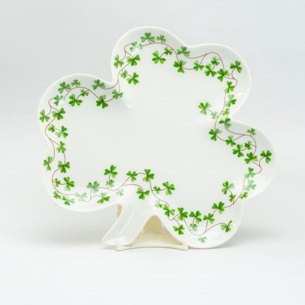 Presenting the Charming Cloverleaf Serving Platter, a delightful canvas for your culinary masterpieces. This porcelain platter, adorned with a sprightly pattern of four-leaf clovers, infuses your table with a touch of Irish luck and the fresh feel of spring.
