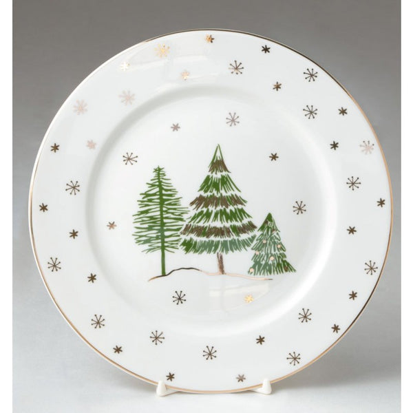These salad plates are chic dinnerware that elevates any dining experience. The green pine tree design is captivating and adds character to my table setting. They're the ideal size for salads. The quality is impressive, and they're resistant to wear and tear. A top-notch choice.