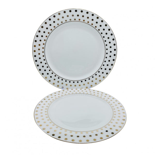 These salad plates offer practical elegance with their polka dot design. The bone china material adds a touch of sophistication, making them suitable for both everyday meals and special occasions. A charming and functional set for any kitchen.