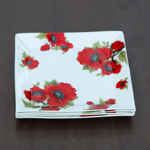 Embrace the vibrant spirit of spring with our Poppy 8 Inch Square Platter Set. Each plate bursts with the lively reds of the poppy flower, bringing a touch of nature’s artistry right to your dining experience.