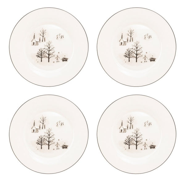 The craftsmanship is evident in the intricate details of the landscape, the precision of the lines, and the gentle rim that frames the winter tales depicted on each plate. The use of bone china not only ensures durability but also gives these plates a luxurious feel that is light to the touch and easy on the eyes.