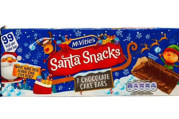 McVitie's Santa Snack Cake Bars are a delicious soft chocolate sponge cake with a layer of smooth chocolate flavoured cream, all fully coated in silky smooth milk chocolate. They're a great festive snack for those looking for their sweet chocolate fix.