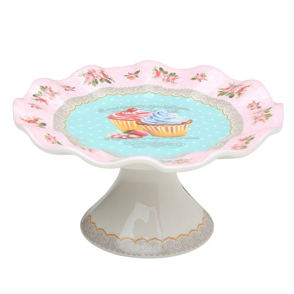 This cake stand offers reliable elegance for wedding desserts. The floral pink design is tasteful, and the sturdy construction ensures a secure base for cakes. A combination of style and dependability that enhances the overall wedding celebration.
