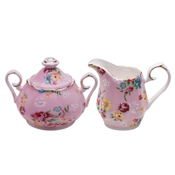 The Shabby Rose Pink Sugar and Creamer Set is an ode to the soft touch of spring and the beauty of a well-tended garden, bringing a breath of fresh air and floral finesse to your tea time.