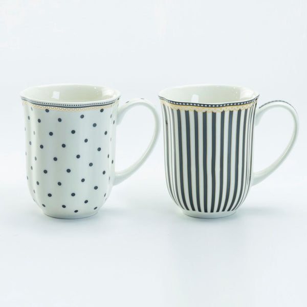 Sip in style with the Timeless Elegance Mug Duo, where classic charm meets modern chic. This pair of mugs offers a nod to the classic polka dot and stripe patterns, refreshed with a contemporary twist for the discerning tea or coffee lover. These mugs are not just a choice for your favorite brew; they're a statement of sophistication on your table.