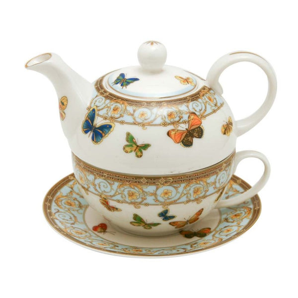 The Blue Butterfly Tea-for-One Set is a simple yet elegant addition to my tea collection. The design is charming without being overly intricate. The packaging ensured a safe arrival, and the set is both practical and aesthetically pleasing. A delightful choice for solo tea moments. Great value for its simplicity and quality.