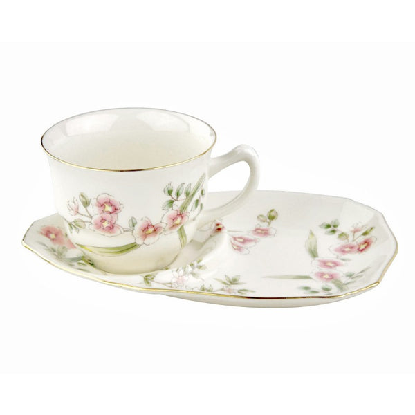 Step into a world of elegance with the Pink Purple Lily 2 Piece Snack Set. This exquisite duo, featuring a delicate teacup and matching saucer, is adorned with the gentle hues of pink and purple lilies, invoking the serene beauty of an English country garden in full bloom.