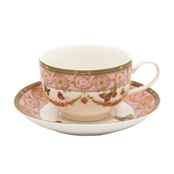 The Butterfly Garland Tea Cup and Saucer Set is a celebration of intricate design and tea-time tradition. Adorned with a garland of butterflies and blooms, this set brings the whimsical charm of an English garden to your table.