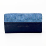 This timeless Harris Tweed envelope purse comes in a choice of Harris Tweed colours. The ladies purse is beautifully crafted from our in-house and unique Harris Tweeds. With envelope closure design on front, this large purse is eye-catching as well as practical. The Harris Tweed purse has 7 card slots inside, a zip compartment, 3 note/receipt compartments and a see through compartment for ID/bus passes. Harris Tweed Purse Dimensions: 18cm x 9.5cm x 2.5cm.