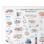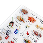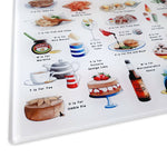 This hand-printed tempered glass chopping board features 26 colourful illustrations of quintessentially English food and drink from 'A is for Apple Pie' and 'B is for Beans on Toast' to 'Z is for Zesty Lemon Drizzle Cake'.