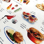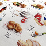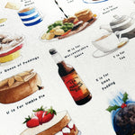A Very English Alphabet 'Food & Drink' tea towel features 26 colourful illustrations of quintessentially English food and drink from 'A is for Apple Pie' and 'B is for Beans on Toast' to 'Z is for Zesty Lemon Drizzle Cake'.
