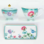 The Mint Floral Garden Tea Service Set is where functionality meets art. This trio is not merely a set; it is a canvas where each petal, each leaf unfolds a story of elegance and serenity. The sugar bowl is a treasure chest for sweet crystals, the creamer a chalice for liquid richness, and the serving tray a stage for the dance of cups and spoons.
