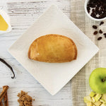 Apple and Custard Pasty - a sweet twist on a Cornish classic that’s as comforting as a fireside chat. Tucked inside that familiar buttery crust lies spiced apples, with just the right balance of sweet and tart and kissed by a sprinkle of cinnamon, nutmeg, and a hint of clove. Sprinkled with plump raisins that have soaked up all those lovely spices, adding little bursts of sweetness in every bite. And just when you think it couldn’t get any better, there’s a luxurious swirl of rich and creamy vanilla bean custard.