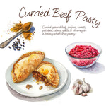 Curried Ground Beef, Onions, Carrots, Potatoes, Celery, Garlic & Chutney in a Buttery Shortcrust Pastry