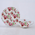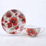 The Assorted Poppy Cups and Saucers Set brings the beauty of the British flora to your table with uncompromising elegance. The vivid depiction of poppies in full bloom is a feast for the eyes, with petals painted in shades of fiery red and leaves in fresh green hues.