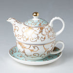 Sip in Opulent Solitude: Aqua Gold Scroll Tea for One Set