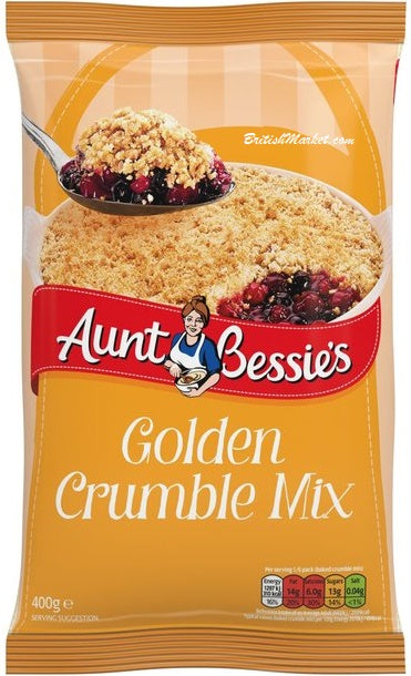 Aunt Bessie’s quick and easy crumble mix, just as it should be. We blend flour, sugar and oats for a satisfyingly sweet, golden, crunchy topping. Ready for you to sprinkle over fruit, bake in the oven, then ask the all-important question: