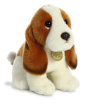 Miyoni features your favorite animals in plush form with a simultaneously realistic and cute design! This Basset Hound features a baby puppy with big, precious puppy dog eyes, floppy brown ears, and white and brown fur throughout the body. A unique plush animal made from premium materials to last and be cherished for many years.