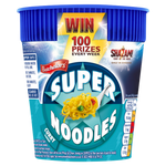 Dried noodles in a curry flavour seasoning with peas and tomato. Our Super Noodles Curry Flavour Noodles are ideal when you need a quick tasty snack or an easy side for your dinner – they are ready to eat in just four minutes! Simply pour boiling water in the pot up to the fill line, let the curry Super Noodles sit for two minutes, give them a quick stir and wait another two minutes before digging in. The punchy curry seasoning is sure to deliver the satisfying flavour you have been thinking about!