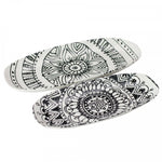 • A pair of 12-inch oval serving trays, featuring captivating black and white BOHO designs.
