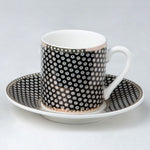 Chic Geometric Pattern: The cup and saucer are adorned with an eye-catching geometric pattern, making a bold statement that's both stylish and sophisticated.