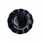- Set of four 9-inch salad plates with a lustrous black finish and gold scallop edging.