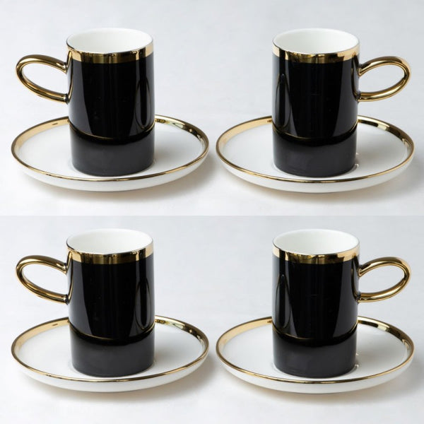 Indulge in the Black & White Gold Espresso Cups and Saucers – a testament to the art of coffee appreciation. This set includes four exquisite cups, each designed to cradle your espresso and elevate your coffee ritual. The elongated shape of the cups not only adds a modern touch but also allows you to savor every sip.