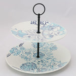 - Introducing the Blue Viola 2-Tier Large Serving Tray – where grandeur meets garden charm.