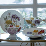 Each cup in this set is a work of art, featuring vibrant sunflowers, dainty daisies, and other wildflowers. The saucers complement the cups, with a subtle floral motif that's both sophisticated and inviting. The set's design reflects the beauty of an English summer, bringing warmth and cheer to any gathering.